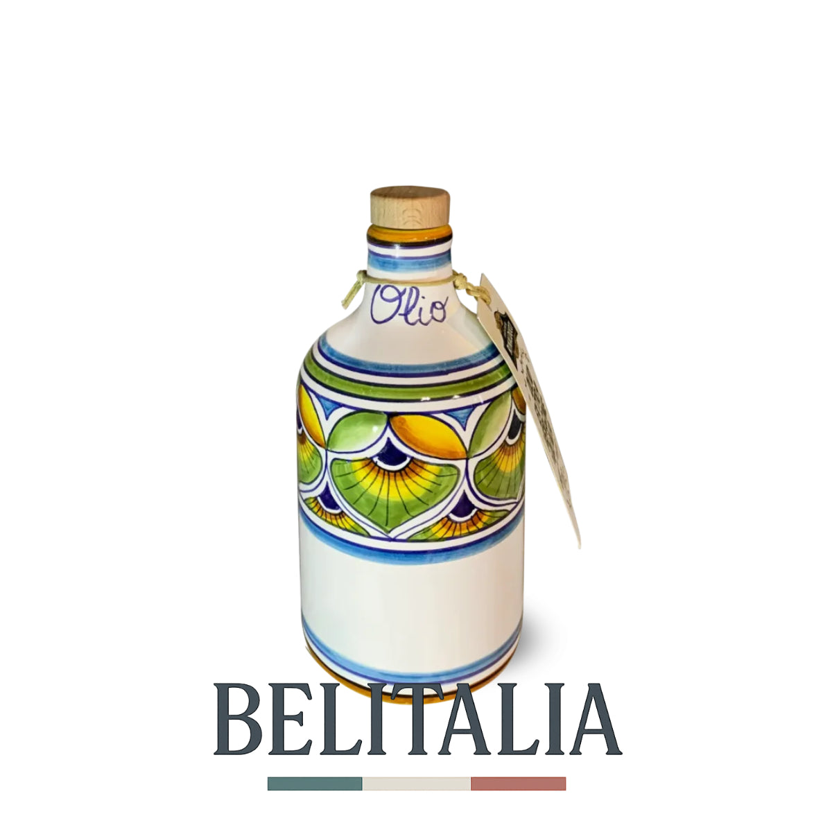 Huile d'olive vierge extra et pot en céramique PLUME VERDE de Deruta.
